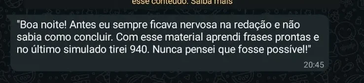 ❌O problema é que a maioria dos cursinhos te joga um monte de regras gramaticais e modelos prontos que não funcionam para todos os temas. Eles não te ensinam a PENSAR como o corretor do INEP.